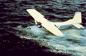 Directly linked to the engine failure but still worth a separate look is the emergency water landing. Even when flying at very high altitudes, we would be unable to soar to the cost if we lose the engine half way between Crete and Egypt. A water ditching would be the unevitable consequence. Several aspects play a role in water ditchings. First of all the actual ditching which one can survive or not. Our aircraft has a retractable gear which is ideal for water ditching as the biggest danger during a water landing is a loop on impact. Thanks to the retractable gear, we'd be like a very fast boat hitting the water at 50 knots. Once past the ditching one has to quickly leave the aircraft as it is most likely going to sink. It can sink within a minute but it can also stay afloat forever, this is very hard to predict.