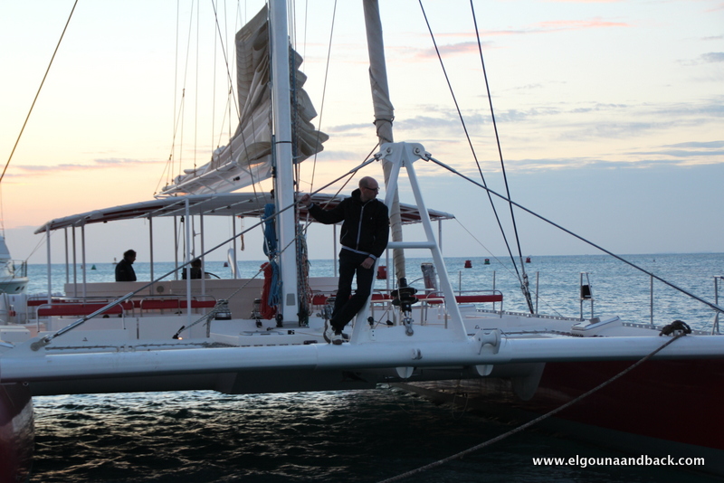 When two pros like Markus and Achim are in town, it doesn’t take long for difficult jobs to emerge. Yesterday it was about bringing Ocean Diva II, a 74 foot catamaran, from its previous harbor El Gouna to Port Ghalib (Marsa Alam), 120 nautical miles south.
