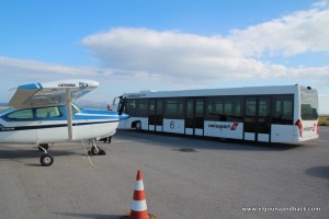 The approach into Iraklion led us through layers of clouds and rather bad visibility (due to the southerly winds bringing loads of Sahara sand from Africa) and we were only able to see the runway when we were right above the threshold. Thanks to a nose dive we managed to land on the first attempt and after a lovely handling service (see pictures) we are now happily sitting in our hotel room and planning tomorrow's leg into the cold north.