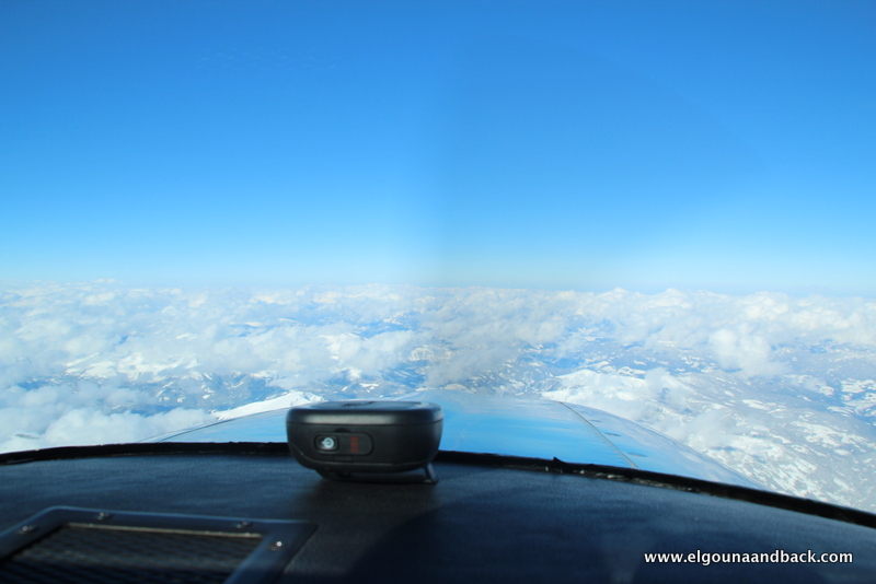 The third day and last day of our onward journey to El Gouna in Egypt. After the tempestous welcome in Stitia yesterday, the weather had calmed down today and were were able to take off as planned at dawn. Today we wanted to continue South from Crete over the open sea. Before takeoff, we ensured that our life raft and emergency equipment was well stowed and easily accessible in case of a water ditching and we put on our life vests during the whole flight. For about two and a half hours there was nothing but blue below and above us. The air traffic controllers of Greece, Cyprus and Egypt cooperated well and got us a few shortcuts to reduce the time over the open sea and save some of our precious fuel.